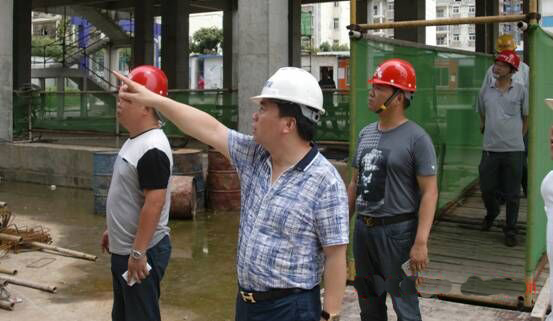 2015年6月13日周六上午,集團(tuán)公司召開完周行政工作例會(huì)后,在總經(jīng)理徐遠(yuǎn)征同志的帶領(lǐng)下,市場(chǎng)管理部、工程管理部、招投標(biāo)部、綜合管理部、市政分公司負(fù)責(zé)人第一站來到蔡甸大拇指廣場(chǎng)檢查施工現(xiàn)場(chǎng)文明施工整改情況,總經(jīng)理首先肯定了上次檢查整改后施工現(xiàn)場(chǎng)明顯改觀,隨后就進(jìn)一步完善圍擋角區(qū)、安全帽佩戴等進(jìn)一步提出了要求;第二站來到大集張堡小學(xué)施工現(xiàn)場(chǎng),對(duì)墻基坑深度提出了嚴(yán)格按圖紙施工的規(guī)范要求,安排由公司工程管理部對(duì)該施工工地實(shí)行24小時(shí)嚴(yán)格監(jiān)管的做法得到了校方領(lǐng)導(dǎo)的充分肯定。