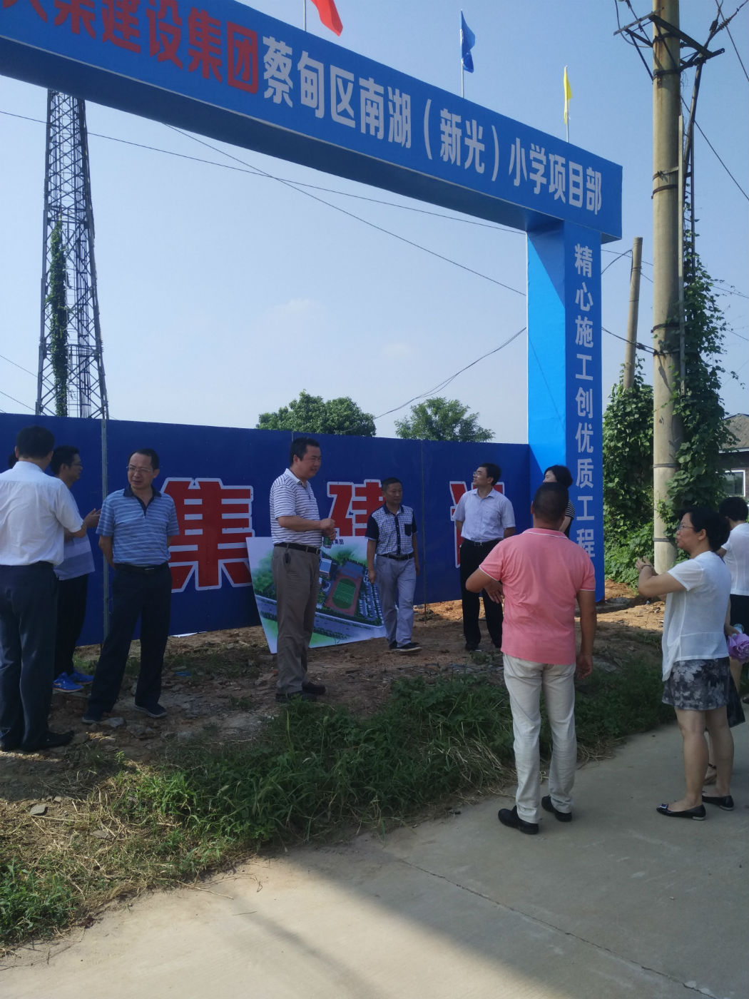 2016年8月12日,上午9:30武漢市教育局主要領(lǐng)導(dǎo)一行8人來到蔡甸區(qū)天鵝湖大道,考察了南湖(新光)小學(xué)建設(shè)情況。區(qū)教育局領(lǐng)導(dǎo),集團公司徐副總及工程部負責人一起陪同。