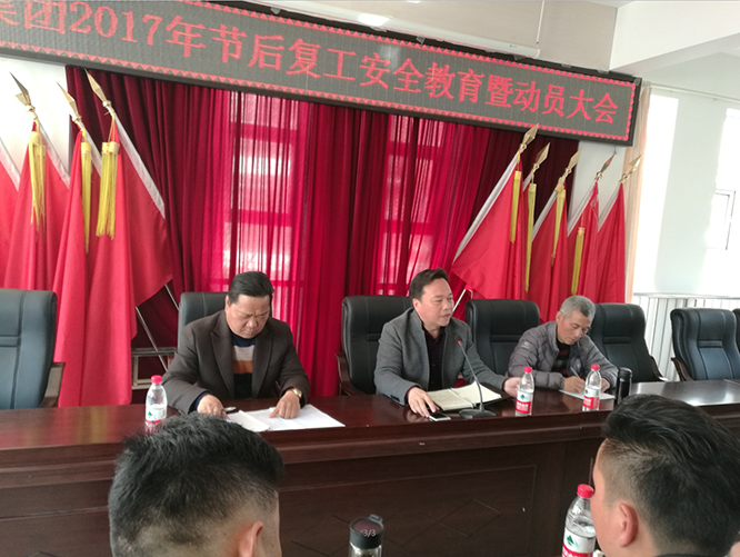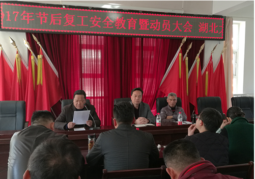 2月13日下午,湖北大集建設(shè)集團(tuán)公司召開2017年節(jié)后復(fù)工安全教育暨動員會,本次會議由集團(tuán)公司副總經(jīng)理徐家富主持,集團(tuán)公司總經(jīng)理徐遠(yuǎn)征發(fā)表重要講話,聚盛置業(yè)陳兆華總經(jīng)理和全體員工出席本次會議。