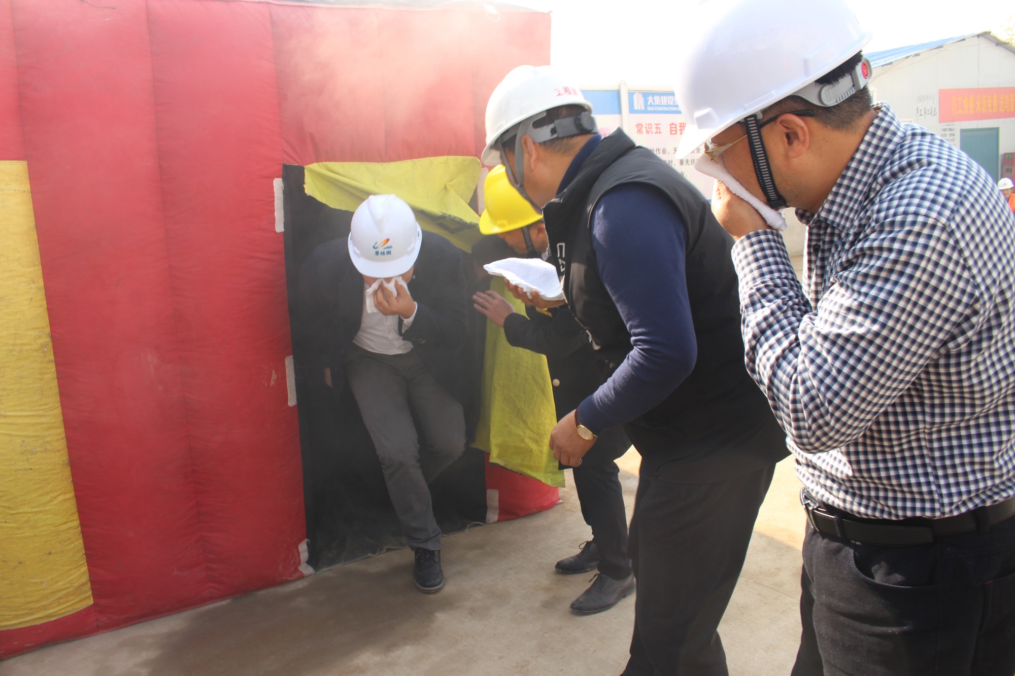 隨后,湖北楚安消防宣教中心王好主任帶領(lǐng)大家共同體驗了應(yīng)急帳篷,應(yīng)急帳篷模擬了火災(zāi)煙霧及火災(zāi)的陰暗環(huán)境,現(xiàn)場人員在王主任的指導(dǎo)下有秩序地進(jìn)入帳篷進(jìn)行體驗。