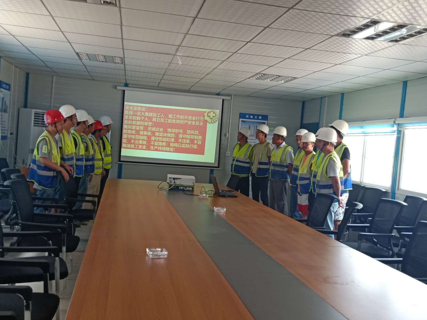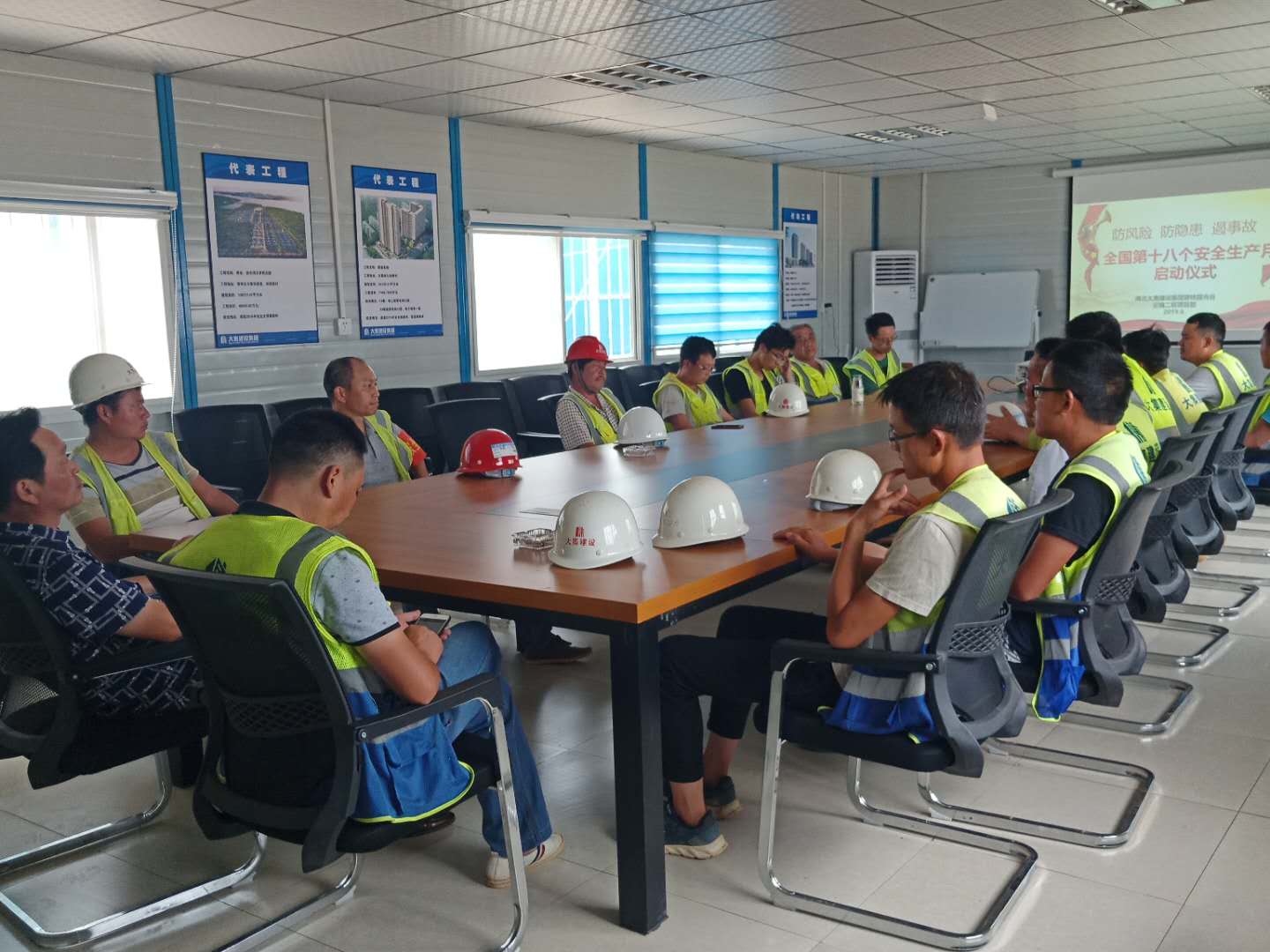 啟動儀式上,生產(chǎn)經(jīng)理陳超首先向大家講解了防范化解重大風(fēng)險,及時消除安全隱患,有效遏制生產(chǎn)安全事故的重要性,并著重強(qiáng)調(diào)了夏季高溫防中暑的各項安全措施、夜間施工現(xiàn)場照明及檢查監(jiān)督事項。隨后,組織了全體人員進(jìn)行安全月活動的宣誓。通過集體安全宣誓,進(jìn)一步推動了現(xiàn)場施工人員由“要我安全”為“我要安全”觀念的轉(zhuǎn)變,現(xiàn)場施工人員也紛紛表態(tài)要堅守安全生產(chǎn)這條紅線,確保工程項目順利安全推進(jìn)。