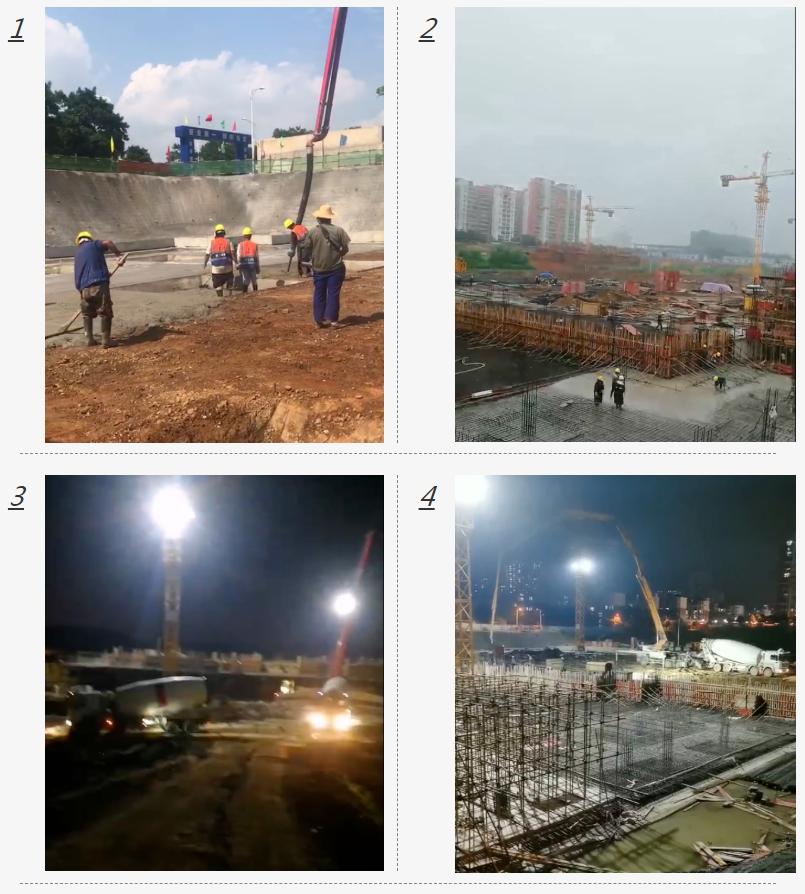 在項目部全體員工上下一心、團(tuán)結(jié)一致的沖刺下,施工現(xiàn)場呈現(xiàn)一片熱火朝天、緊張繁忙的景象:白天,挖機(jī)不停地鏟土、運土,運輸車輛不斷地往來運輸,塔吊不停揮舞著“鐵臂”,施工人員分布在工地各個角落,緊張有序地忙碌著;深夜,工地上依舊燈火通明,機(jī)械聲不斷,夜間氣溫雖比白天低了一些,但汗水仍舊濕透了施工人員們的衣背。