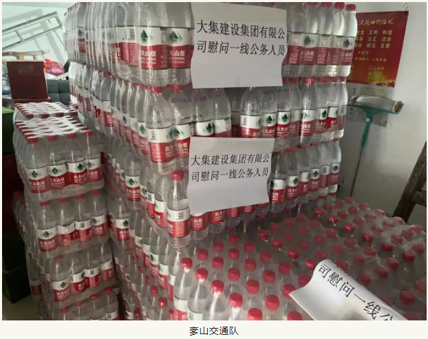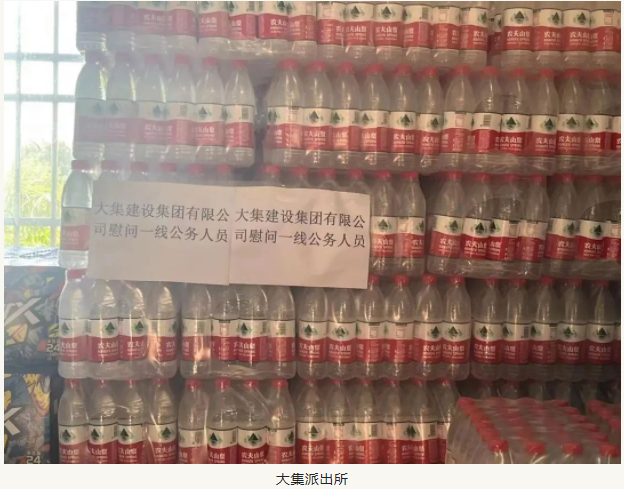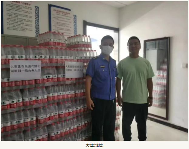 活動中,湖北大集建設(shè)集團(tuán)分別向大集城管、大集派出所、大集交通隊(duì)、奓山派出所和奓山交通隊(duì)贈送了100箱礦泉水和20箱紅茶,并表達(dá)了對一線民警、交警和城管人員在高溫下堅(jiān)守崗位的衷心感謝!