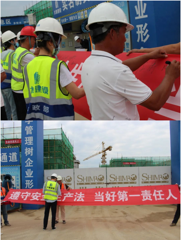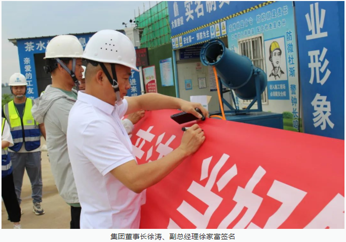 活動開始,集團董事長徐濤、副總經(jīng)理徐家富及各部門負責人、各項目經(jīng)理率先在“遵守安全生產(chǎn)法,當好第一責任人”條幅上鄭重簽名,寫下對肩負安全生產(chǎn)責任的承諾,隨后各項目施工員、安全員紛紛在條幅上寫下自己的名字,表達對做好安全生產(chǎn)相關工作的信心和決心。