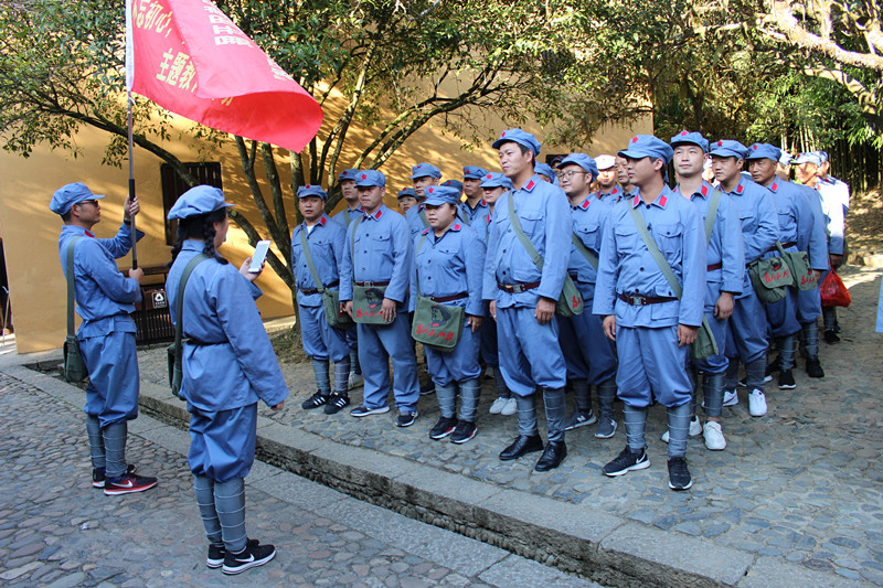 在主題教育活動期間,全體學(xué)員身穿紅軍服、頭戴紅軍帽、肩背紅軍包,整裝束腰,通過專題教學(xué)、現(xiàn)場教學(xué)、體驗(yàn)教學(xué)等多種形式,零距離感受了井岡山革命根據(jù)地的崢嶸歲月,深刻體悟了跨越時空的井岡山精神。