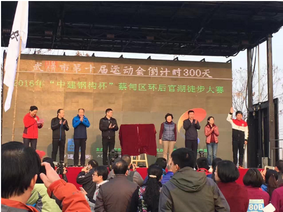 12月10日上午9點(diǎn)整,2016“中建鋼構(gòu)杯”蔡甸區(qū)環(huán)后官湖徒步大賽在山靈水秀的白蓮湖廣場鳴槍開賽。3856名參賽人員從這里出發(fā),在風(fēng)景如畫的濕地公園,領(lǐng)略沿途的自然風(fēng)光,感受非一般清新的武漢。奔馳這樣遠(yuǎn)離都市喧囂的綠色賽道上,不僅是一場完美的人生體驗(yàn),更是一次絕佳的身體放松之旅。湖北大集建設(shè)集團(tuán)在董事長徐濤的帶領(lǐng)下以最飽滿的熱情迎接這場賽事!