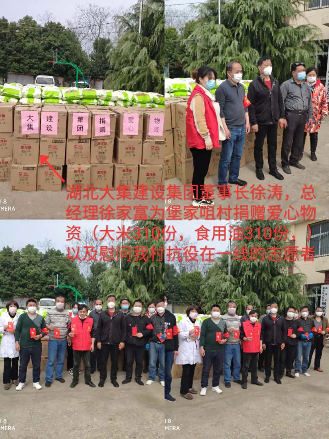 徐總代表集團(tuán)慰問(wèn)一線志愿者,代表集團(tuán)向堡家嘴村每家每戶捐贈(zèng)50斤大米、5升油,物資累計(jì)價(jià)值12萬(wàn)元