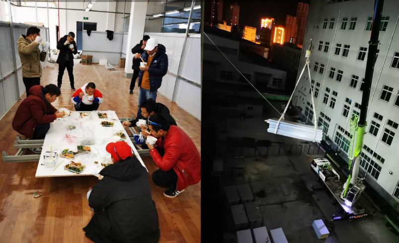 張笠一直強(qiáng)調(diào),在方艙建設(shè)中,他學(xué)到的比付出的更多!他說,當(dāng)時接到任務(wù),只覺得難以完成,人員、材料都是很大問題,對這個工程自己也不知如何下手,第一天,他整個人都是蒙的!直到大家在極其困難的情況下想方設(shè)法地組織材料、人員,他才意識到這個任務(wù)再難也得硬著頭皮完成!尤其是在看到董事長徐濤親自搬運(yùn)鋼管的那一刻,他才真正有了動力,開始慢慢進(jìn)入狀態(tài)!當(dāng)看到第二天原本計(jì)劃兩天完成的任務(wù),在所有人的努力下半天就完成了,他才真正相信團(tuán)結(jié)的力量,才真的有了決心和信心!