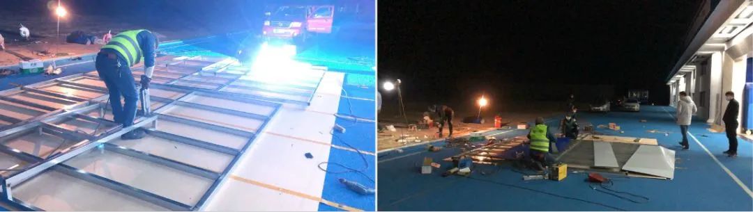 3月6日晚上21:00,王總收到方艙醫(yī)院第四次增加工作內(nèi)容的通知,他二話不說立馬帶人連夜趕往現(xiàn)場,看現(xiàn)場,定方案,組織材料人工。3月7日一大早,施工正式開始,當天陰雨連綿,本次施工任務(wù)又全在室外,尤其是到中午,雨勢逐漸轉(zhuǎn)大,可所有人員沒有抱怨,沒有退縮,依舊冒雨搶工,順利于下午17:00完成所有工作內(nèi)容,他們的專業(yè)態(tài)度和奉獻精神,再一次感動了業(yè)主方!