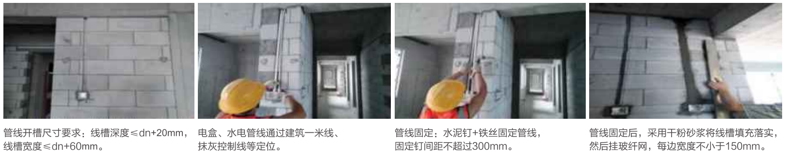 2.注意在衛(wèi)生間、廚房等有反坎部位相連的砌體排版從25cm起,但務必保證混凝土成型面標高與砌體灰縫一致;